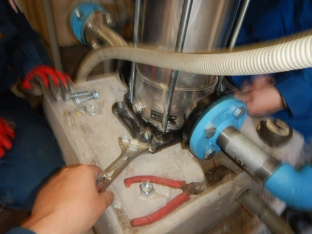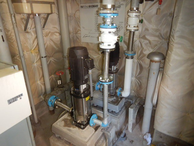建物で使う「水を送り出すポンプ」と「排水をするポンプ」を新しいものに取り替える作業です、水が出ない・流れないなどの防止となります。